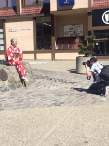 of the everyday citizens here who make our city a better place under difficult circumstances. Yep, I said it: For the last couple of years, you’ve probably been hearing about what some of us politely call “the changes” and what one of my favorite artist/activists calls the problem of gentrif-c-ation. Despite the pressures of living in the city with the highest cost of living in the United States, if we’re lucky (and I am) we’re making it with some help, some compassion and on the wings and the prayers of our best and brightest residents. I hope you’ll read the latest published stories in our ongoing series of profiles: On artist Marco Razo, poet and movement worker, Tongo Eisen-Martin, Cherokee broadcaster, Mary Jean Robertson, Japantown preservationist Karen Kai, and public health advocate Mike Shriver and let me know what you think. This Sunday we’ll be featuring the super-charged electrical contractor, Hanson Lee. Oh, and I get to collaborate with a great photographer, too: Here’s a snap I took of Kevin Hume at work photographing Karen Kai. Thanks for reading!