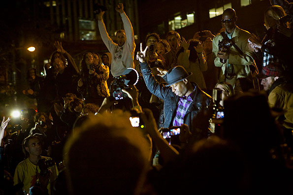 “Everybody has a point, everybody has an idea everybody has a perspective on the world,” said rapper Lupe Fiasco when asked about musician participation in OWS. Stressing that celebrities are just like the rest of the occupiers, except in a higher tax bracket, he noted, “The leader is Occupy; it is the movement.”